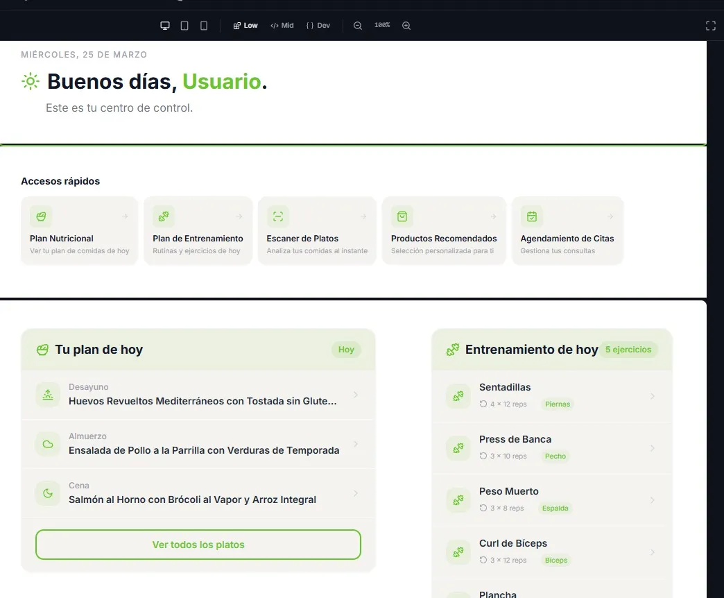 Lanza tu plataforma de nutrición personalizada en minutos